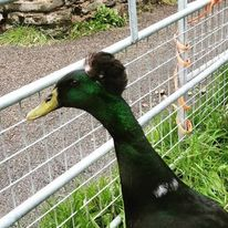Ping is an Indian crested runner duck with a pompom on his head